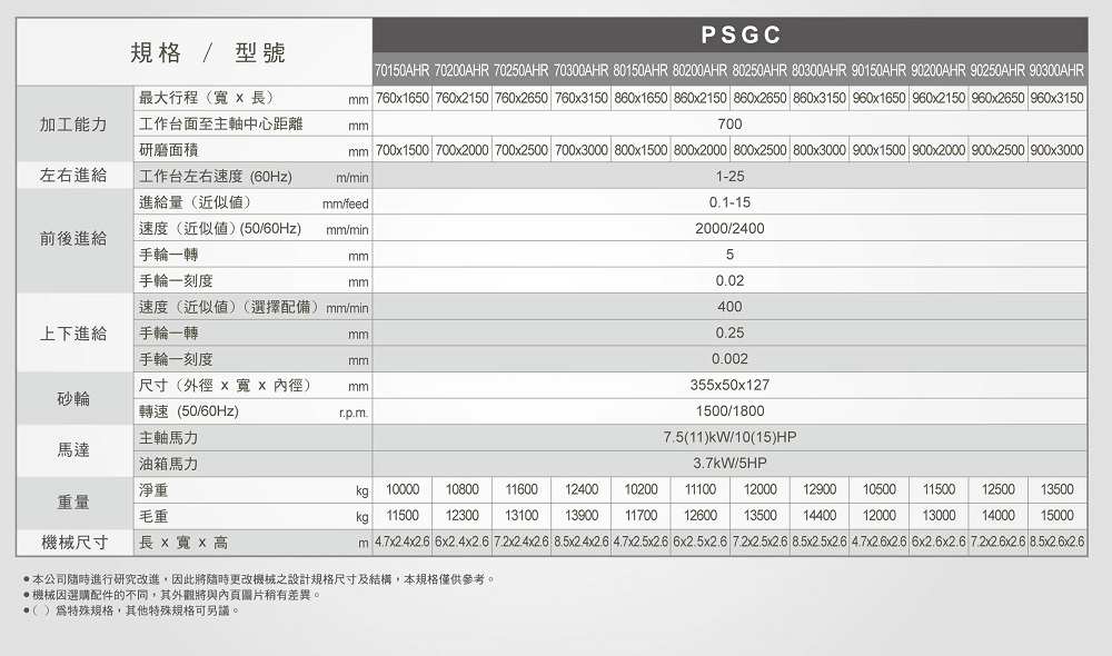 • 工作台左右滑道长度远长于台面之长度(一般均为等长)而与工作台长度相等,如此工作台于高速运动中不会发生扭曲变形而失去精度(PSGS系列除外)。