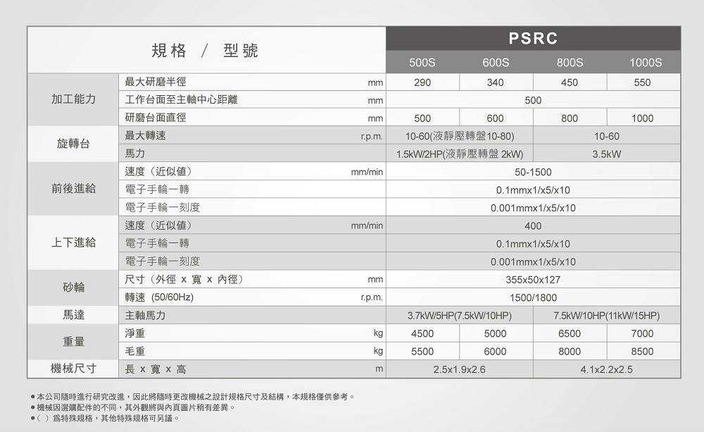 • 工作台左右滑道长度远长于台面之长度(一般均为等长)而与工作台长度相等,如此工作台于高速运动中不会发生扭曲变形而失去精度(PSGS系列除外)。